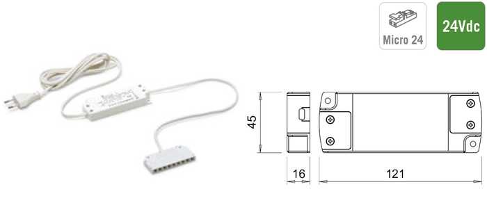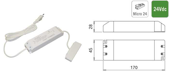 | 041743 | Blanc | 220-240Vac | 24Vdc | 15W | 1 pièce |
