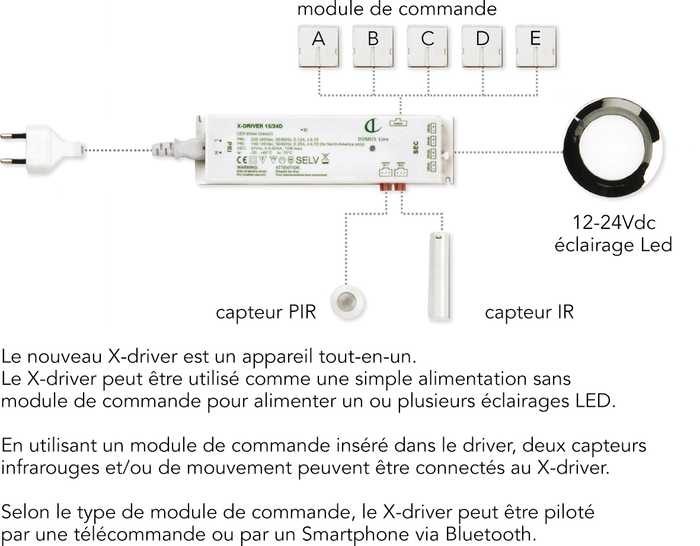 - raccordement direct de 2 capteurs infrarouge et/ou détecteurs de mouvement