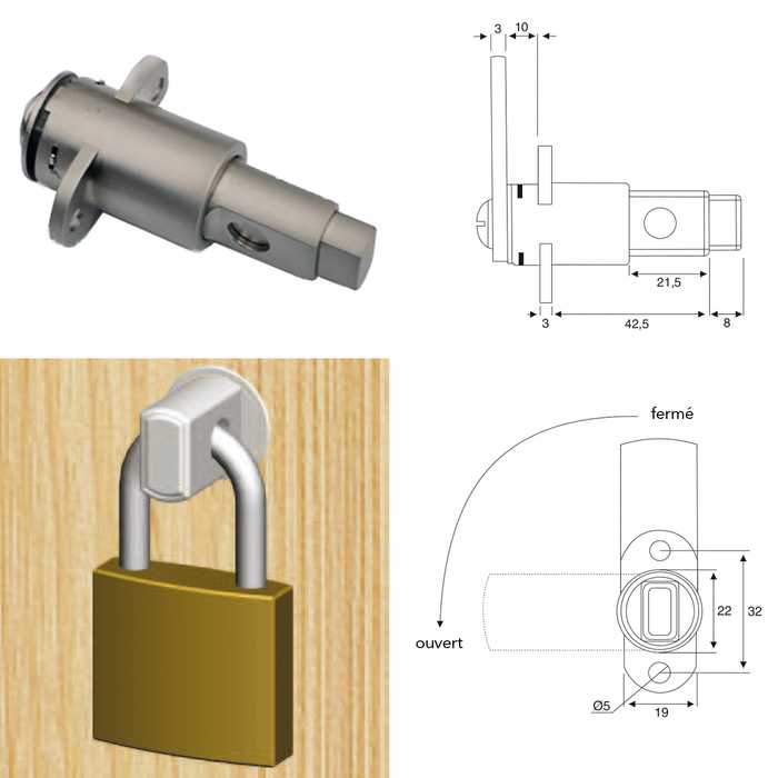 | 013906 | Nickel mat | Bouton porte-cadenas | Maximum 22 mm | 1 pièce |