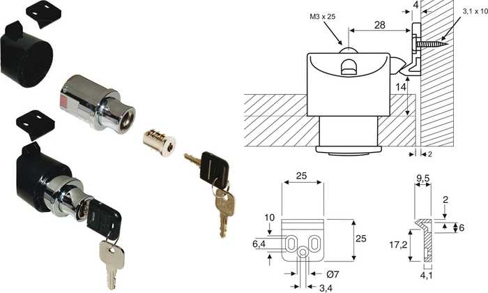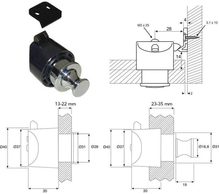 | 013666 | Chromé | Serrure à poussoir pour cylindre | 13-35 mm | 20 pièces |