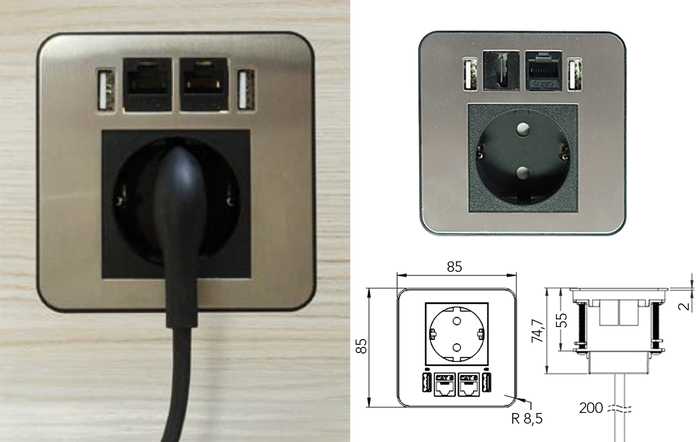 | 022474 | Zwart/inox | 1 stopcontact met randaarding (Schuko) + 2 USB A chargers (5V/2,15A) | 1 stuk |
