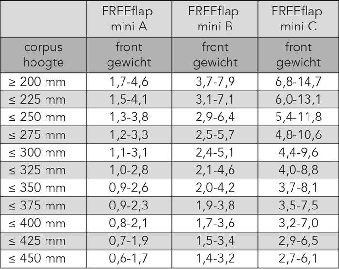| 051641 | Grijs | FREEflap mini B | 107° | 1 set |