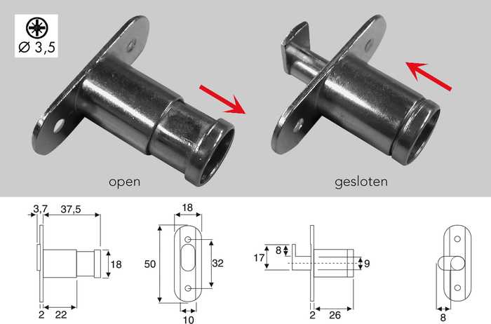 Drukcilinderslot voor schuifdeuren type 1121.300