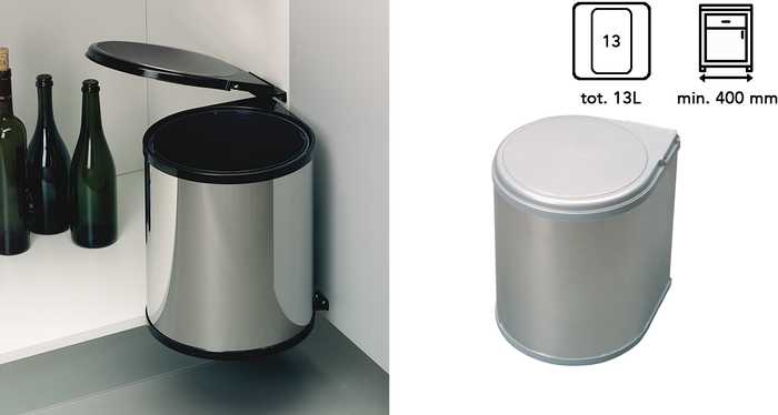 | 043036 | Inox/grijs | 277 x 277 x 355 mm | Min. 400 mm | 1 x 13L | 1 stuk |