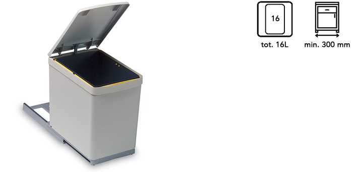| 043031 | Zilver grijs | 230 x 380 x 360 mm | Min. 300 mm | 1 x 16L | 1 stuk |