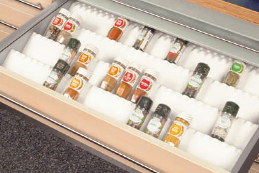 Kunststof inleglade voor kruidenpotjes op maat te snijden