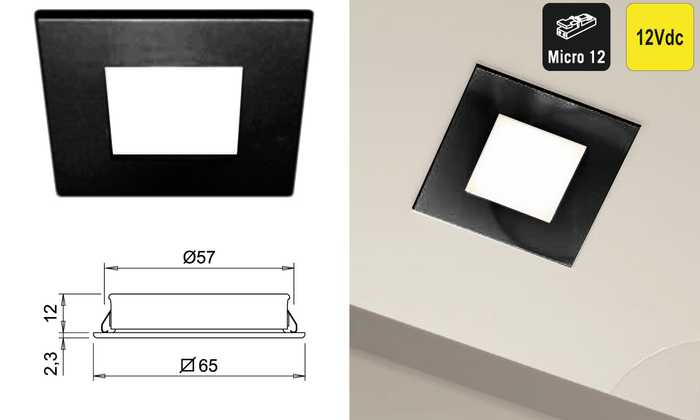 | 047915 | Zwart mat | Super warm wit, 2700°K | 240 lux/360 lm | 12Vdc | 3W | 1 stuk |