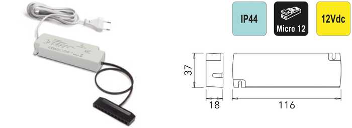 | 041745 | Wit | 220-240Vac | 12Vdc | 15W | 1 stuk |