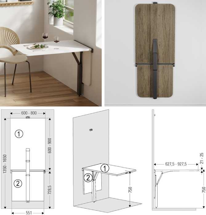 - ruimtebesparende klaptafel voor muurbevestiging - de tafel kan met één hand worden ontgrendeld, waarna deze zacht naar beneden glijdt - voorzien van een kinderbeveiliging