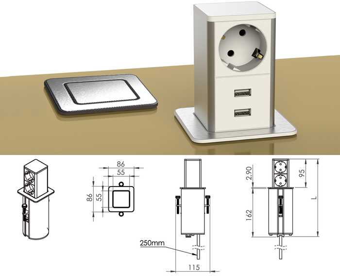 | 022192 | Wit/inox | 1 stopcontact met pinaarding (FR/B) + USB A + USB C charger (5V/4A) | 80 mm | 1 stuk |