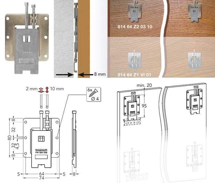 Dubbel regelbare paneelbevestiging type 814.64.Z2.03.10 voor bovenzijde paneel